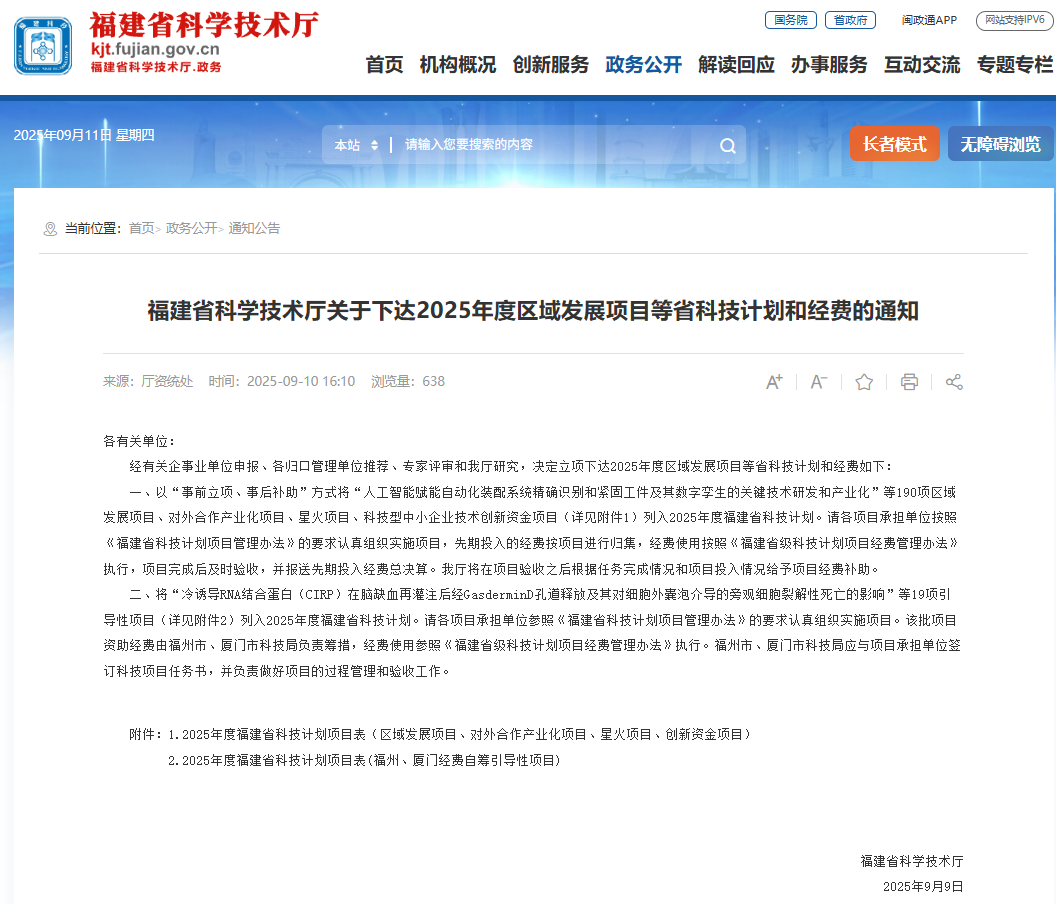 近日,福建省科學技術廳發(fā)布《福建省科學技術廳關于下達2025年度區(qū)域發(fā)展項目等省科技計劃和經費的通知》,水投設計公...